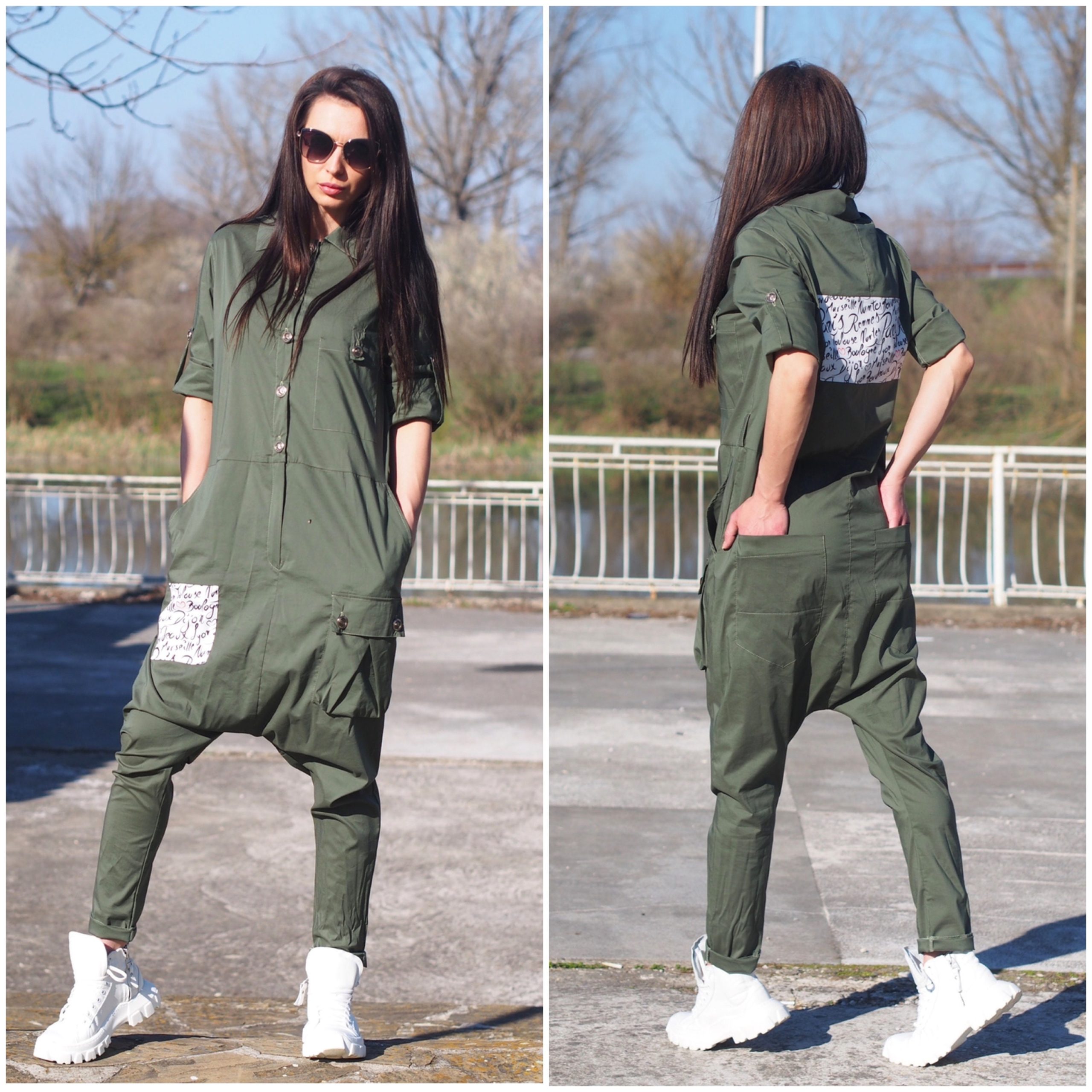 Extravagant Cotton Harem Jumpsuit Loose Women Drop Crotch