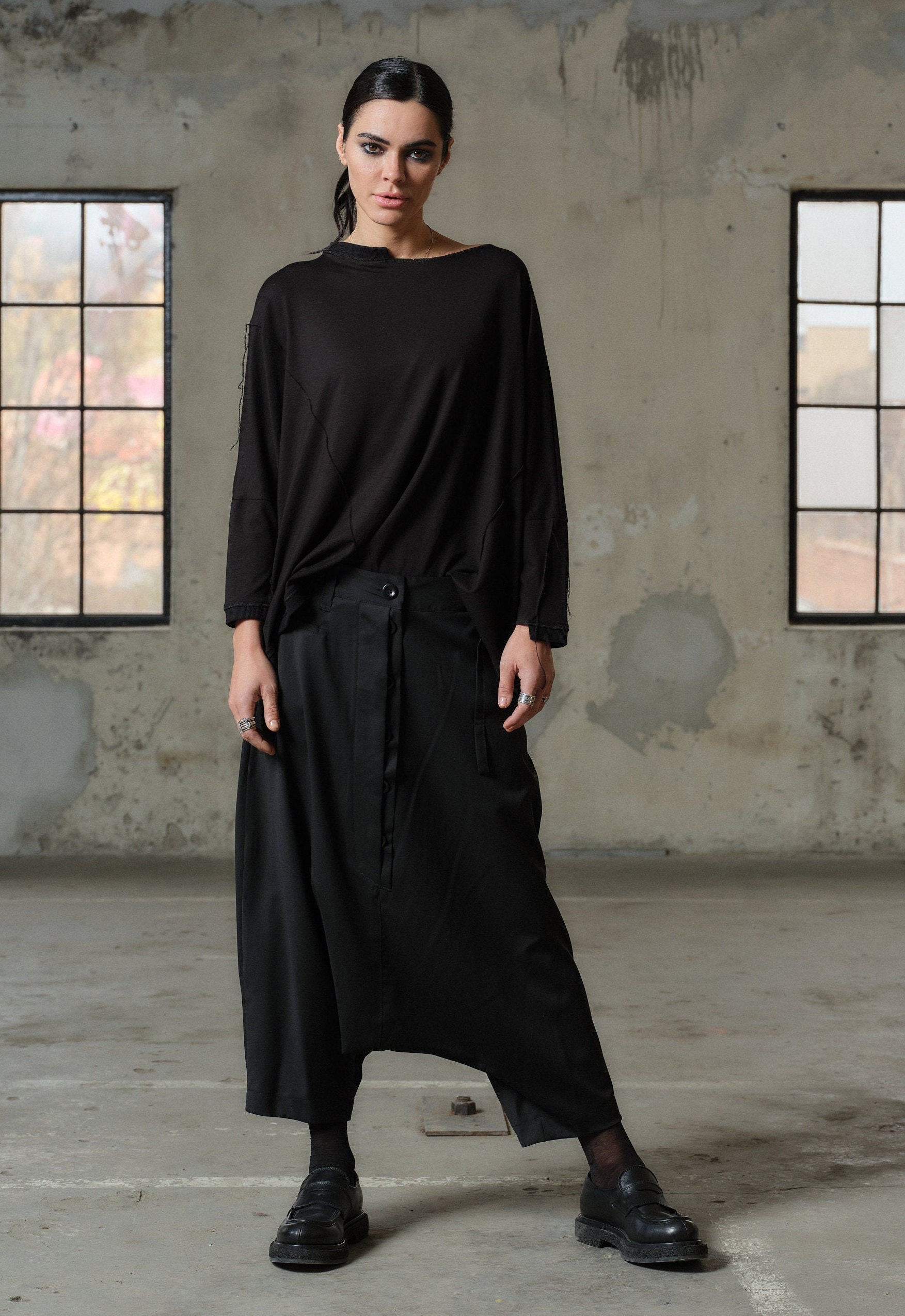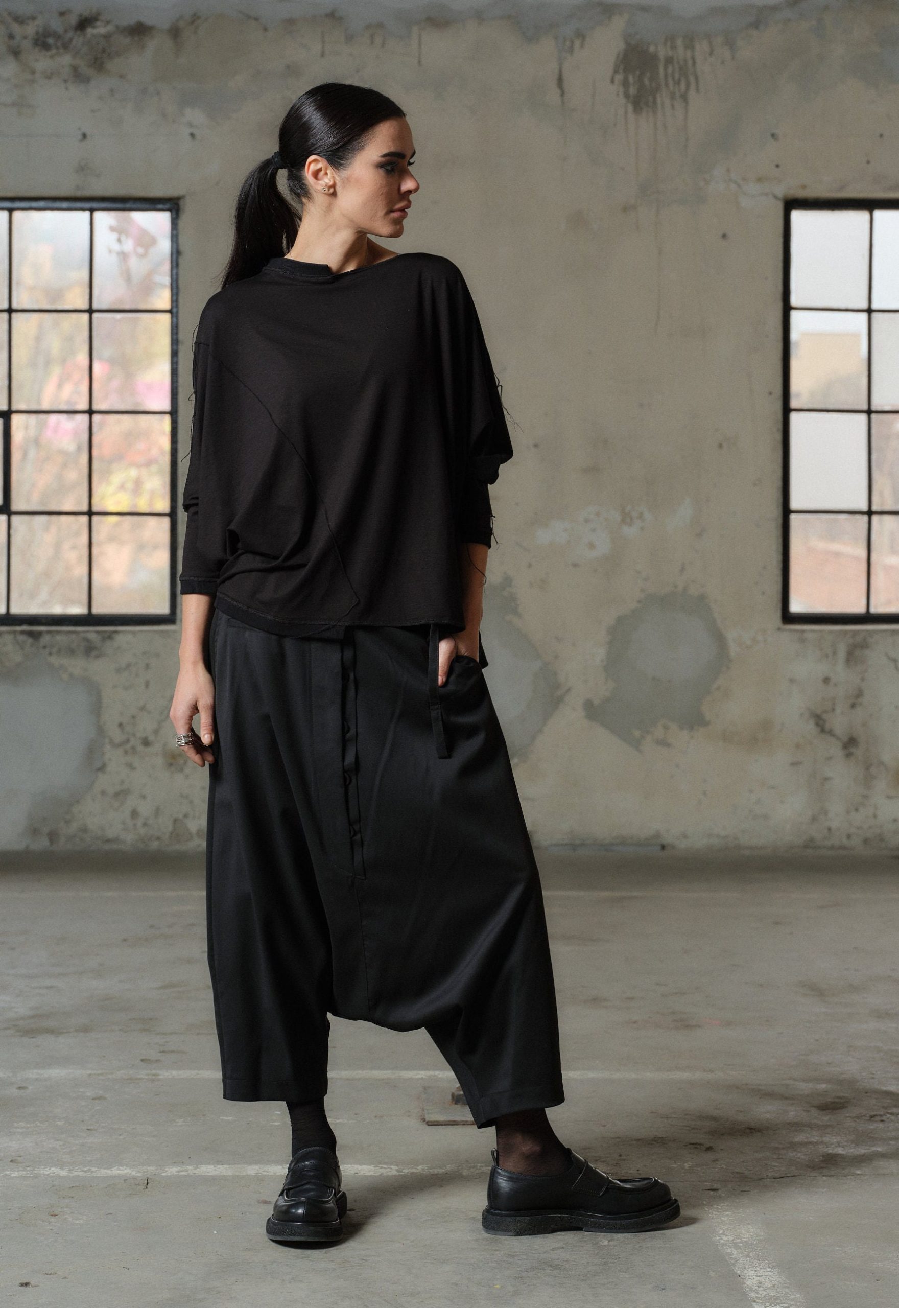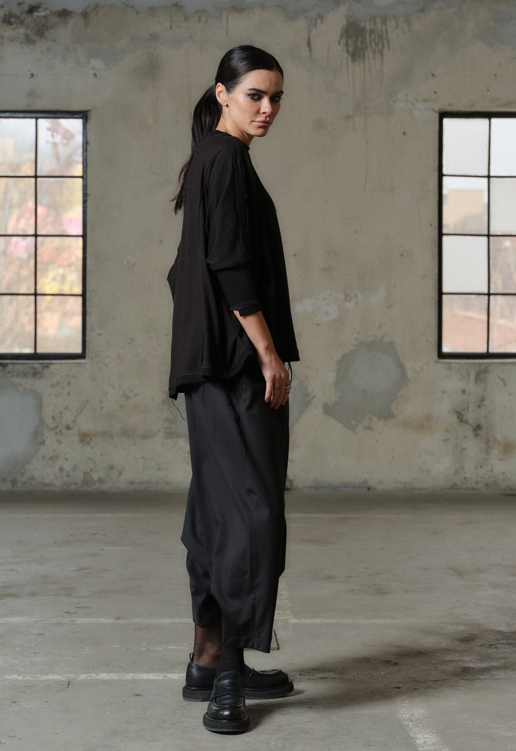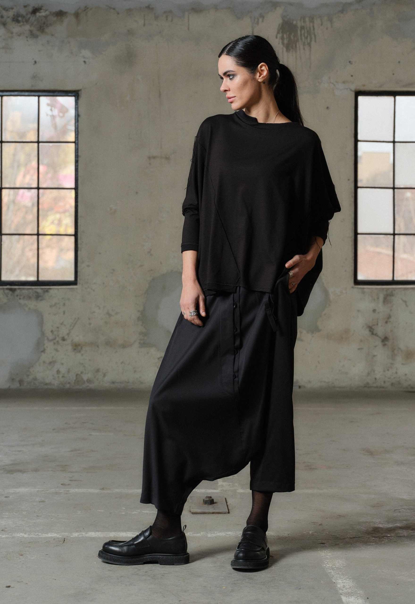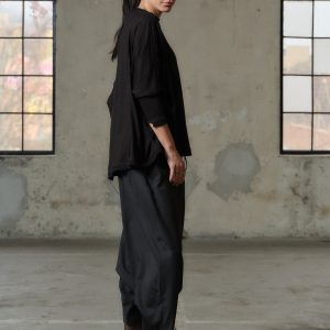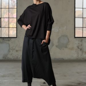Crafted with care and creativity, our Handmade Viscose Top boasts a relaxed fit that drapes gracefully on your silhouette, ensuring both comfort and sophistication. Its asymmetric construction adds an edgy flair, while 3/4 sleeves provide a touch of elegance.