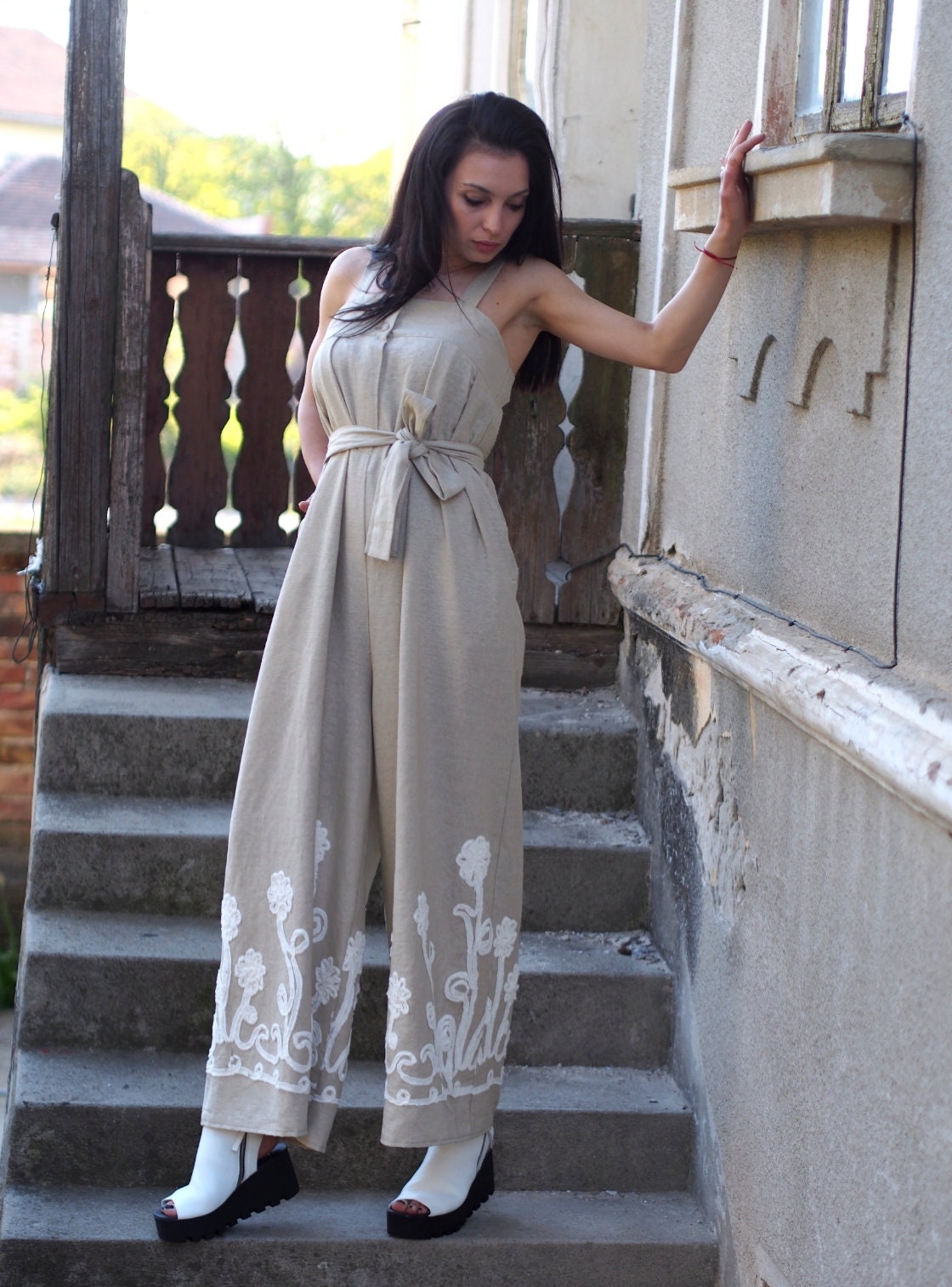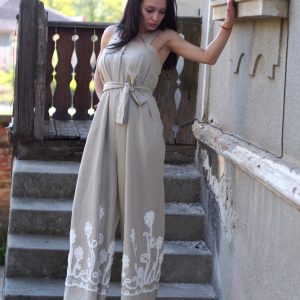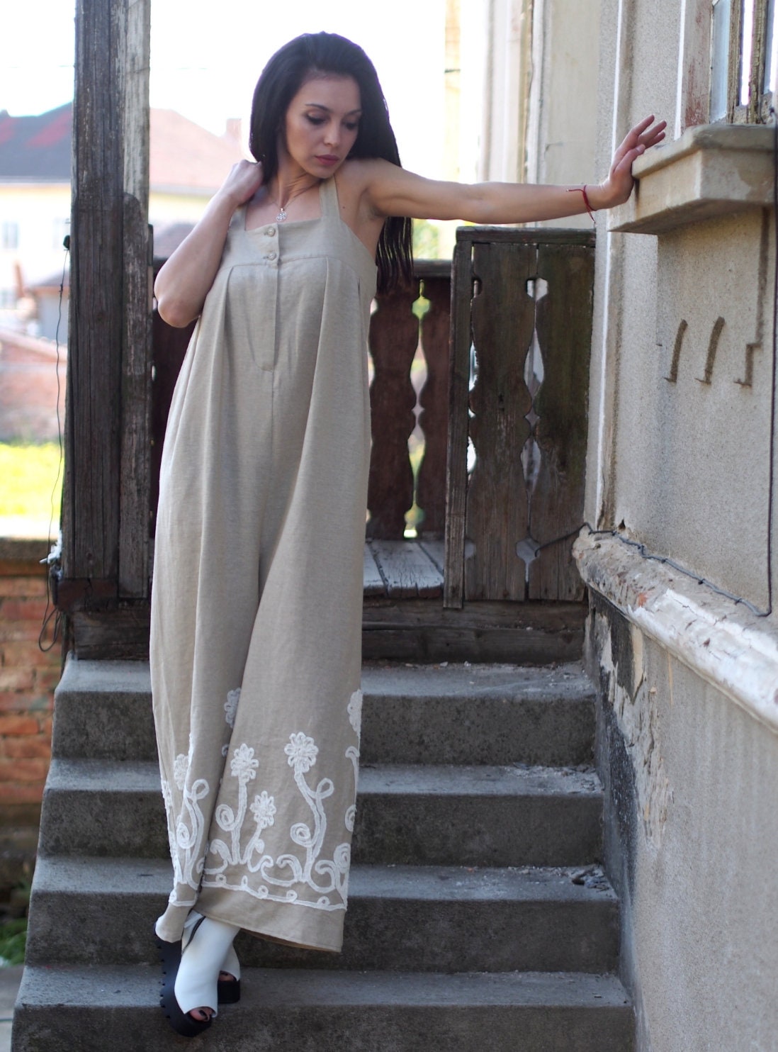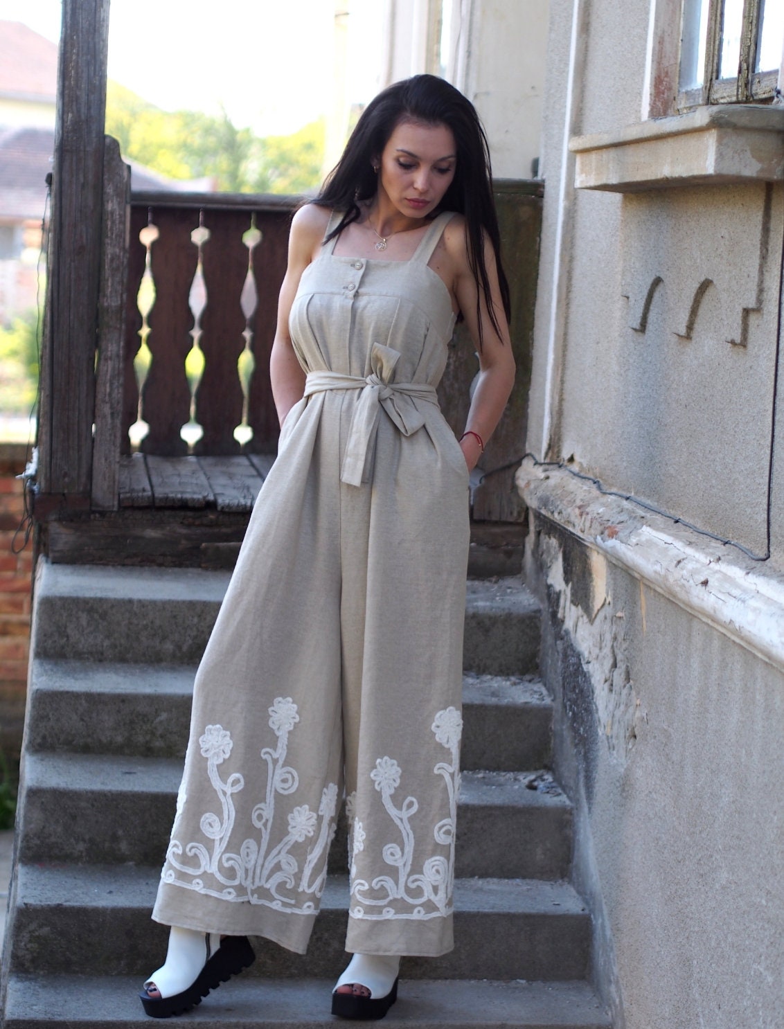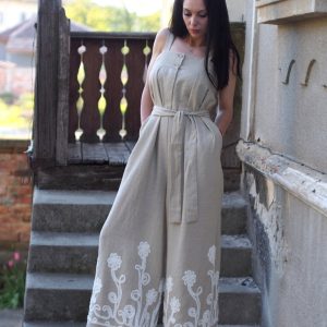 Linen Jumpsuit/ Oversized Summer Romper / Women Clothing/