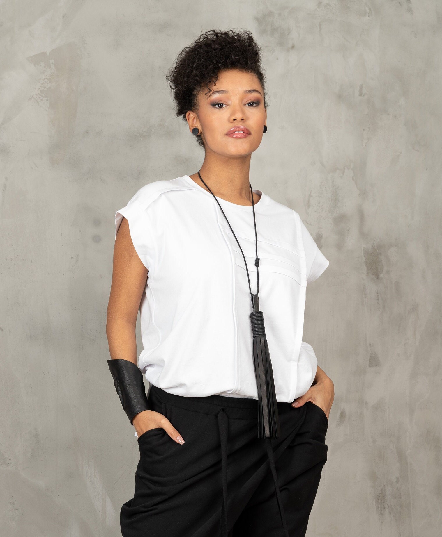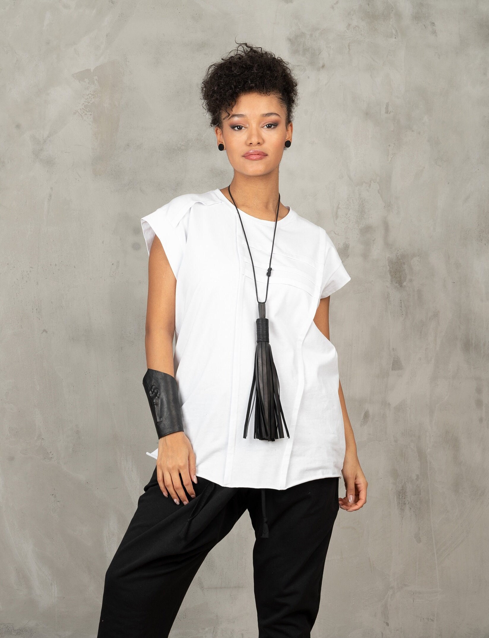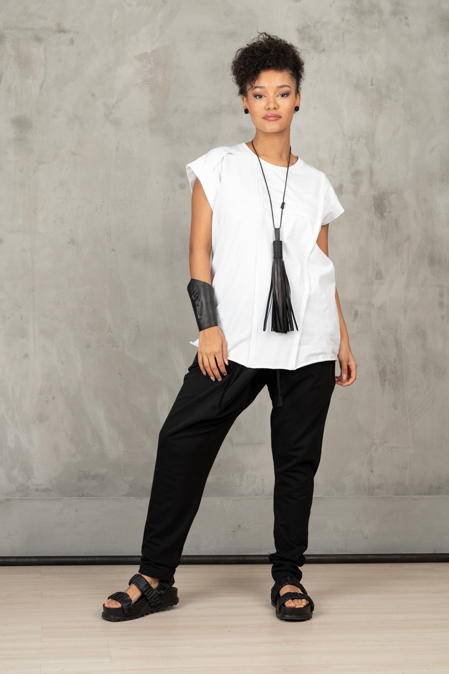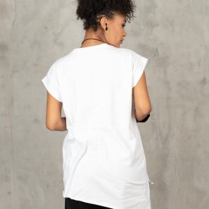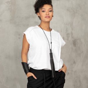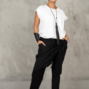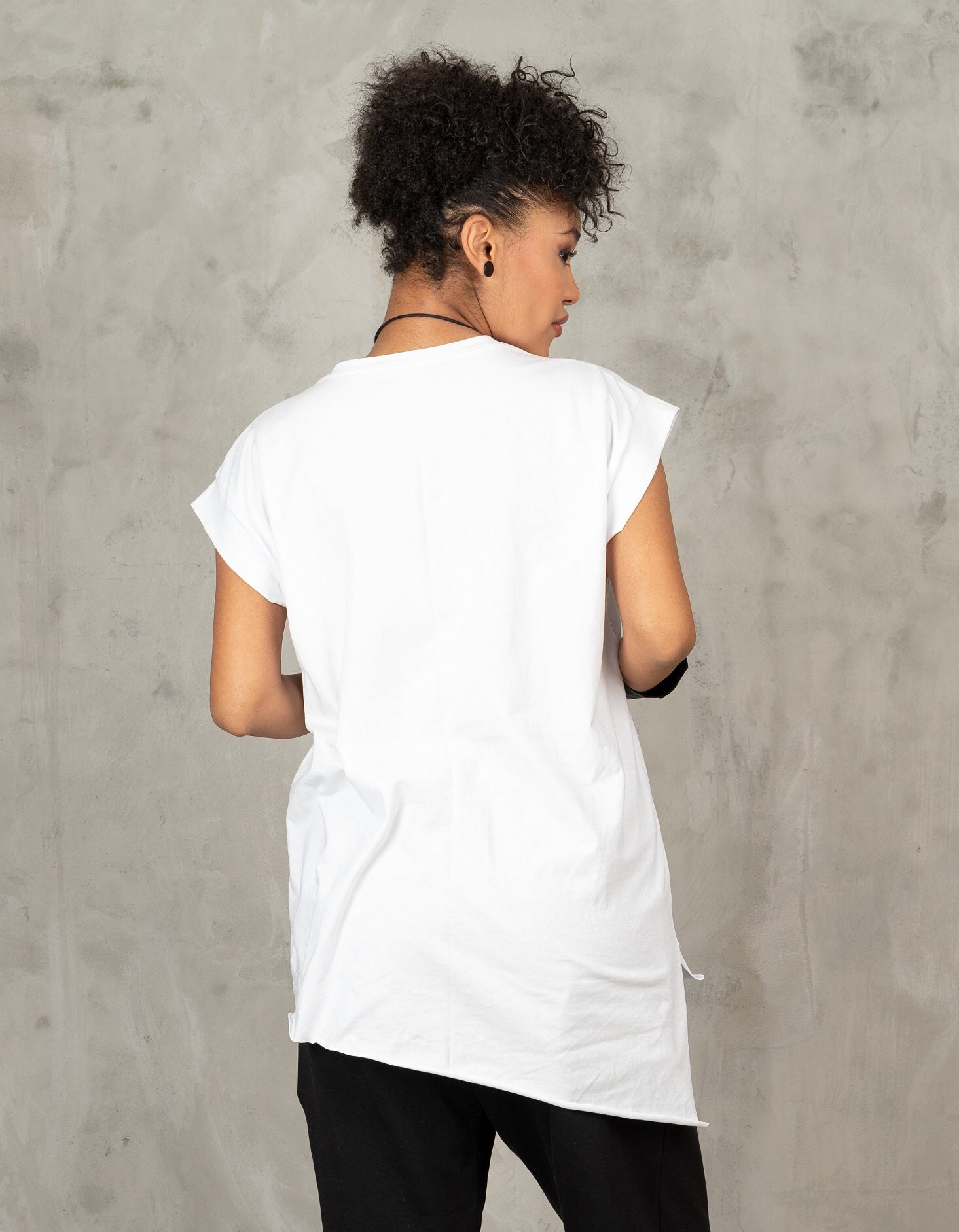 White Sleeveless Blouse: Avant Garde Asymmetric Top